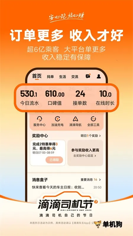滴滴车主功能强大,能提升跑单效率。它有智能派单,订单精准匹配,还能自定义接单距离和目的地类型主动选单。导航升级,有红绿灯倒计时、上车点分级引导等。能实时公示订单收入明细,无隐藏费用。整合充电桩、加油站信息,一键导航直达。高峰时段节假日订单充足,多类型订单承接,收入管理可视化。总之,能全方位解决司机跑单中空驶、接单难、管理繁等问题,是司机跑单的好帮手。