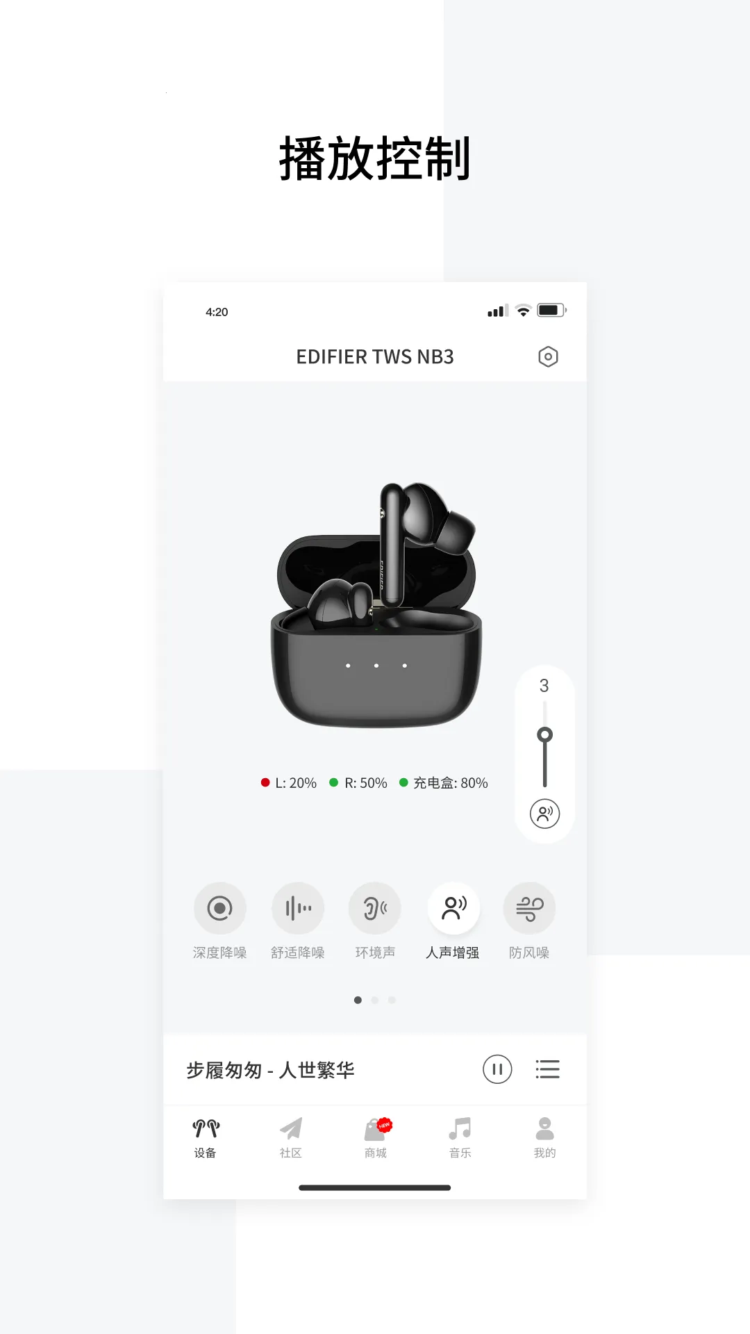 3. 兼容多款产品:兼容所有漫步者蓝牙产品,连接上即可使用,还通过丰富人机界面展示更多隐含功能,提升产品价值与可玩性。
