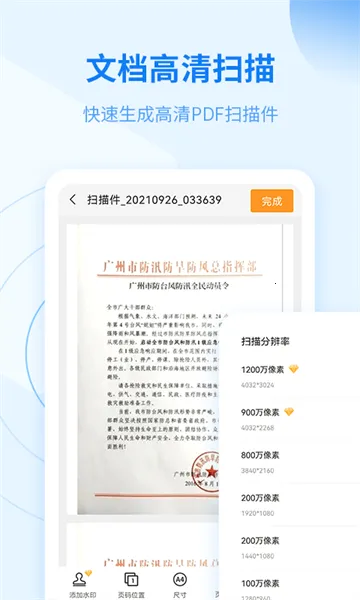 多格式输出:扫描结果导出为PDF或JPG格式,适配不同用途需求。PDF支持附加安全设置与个性化标记,增强实用性与专业感。