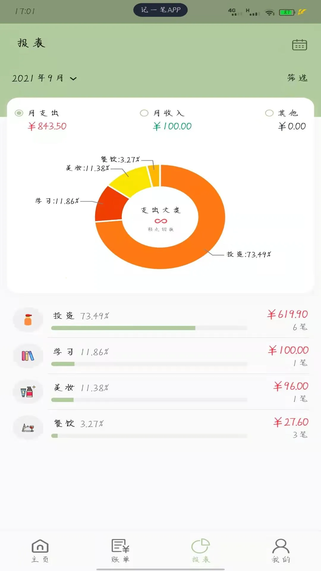 1 支持二级分类及图表分析,轻松掌握消费习惯。