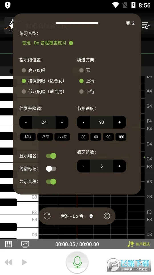 它的功能强大又实用。对着手机麦克风哼唱,就能自动识别分析音高音调,还能告诉你唱得准不准。能测试音高音域语调,帮你掌握更多唱歌细节。支持在线发声训练,提供多种发声训练模式和钢琴辅助,轻松找到曲调。而且可以实时分析显示歌唱音高音调曲线,让你清楚看到自己的发声情况。