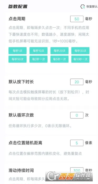 4、支持全局点击间隔、触摸时长以及点击次数设置,人性化十足。