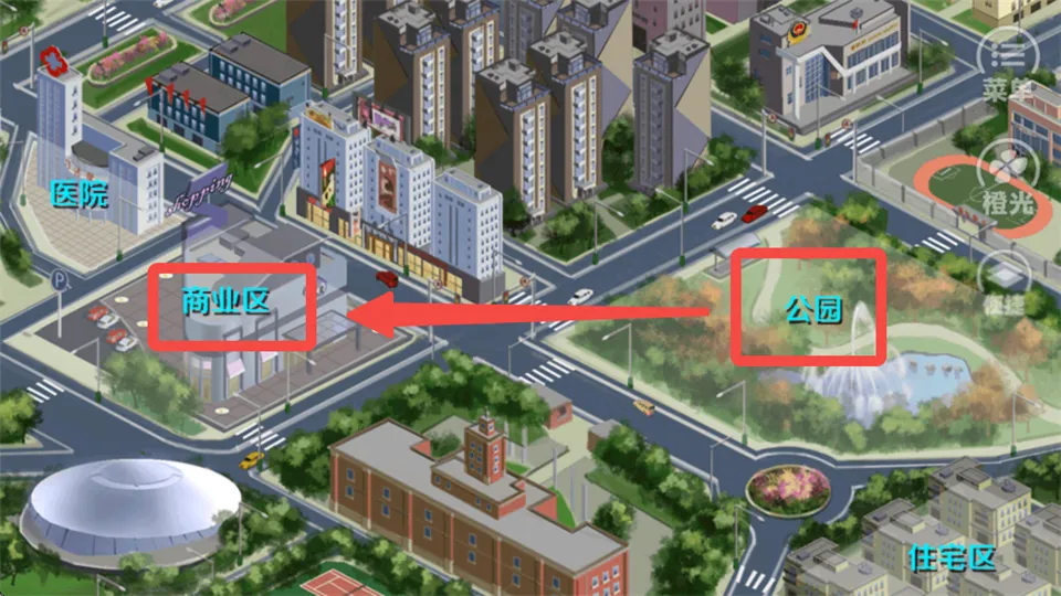 11、公园、商业区全都点一遍,最后去医院。
