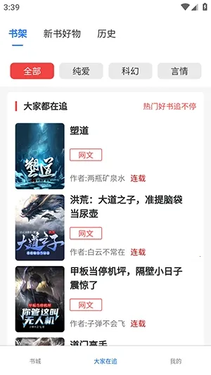 实时更新,追书无忧:平台实时推送最新上架作品,书籍更新会推送实时提示,还能设置个性化提醒,让你随时掌握心仪作品的最新动态,不错过任何精彩内容更新。
