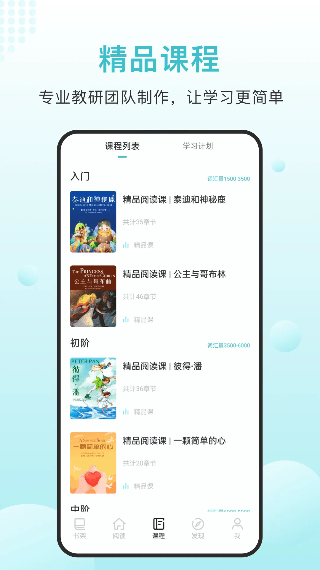 1、海量丰富图书资源:涵盖人物传记、经典名著、书虫系列、儿童读物、长篇短篇小说等上万本英语图书,分类齐全,不管是新手还是大神都能找到合适读物。