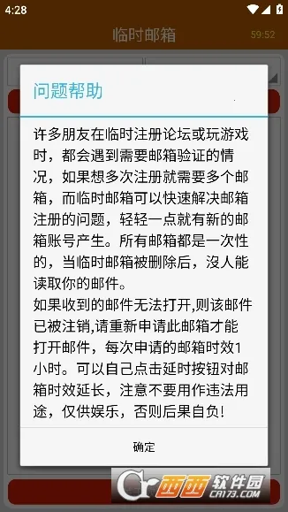 如果你在临时注册论坛、玩游戏或进行其他操作时,需要邮箱验证,又不想暴露真实邮箱,临时邮箱就能帮你解决大问题!它能即时生成一次性邮箱地址,完全免费,还能匿名随机获取,保护你的隐私。这个软件能随时发送照片等附件,支持常见邮件操作,便捷又快速。打开软件就有免费邮箱,不喜欢还能重新获取。它能提供二维码形式,也能复制邮箱地址。收到的邮件在收件箱浏览,所有功能免费无广告。用它接收验证码超方便,验证成功后提示消失。它还能用于Web应用注册双重帐户、注册商店会员卡、测试应用、消除垃圾邮件等。每次申请的邮箱时效1小时,可点击延时按钮延长。用完直接删除或延长,非常适合注册不常用的论坛网站,保护隐私又安全!