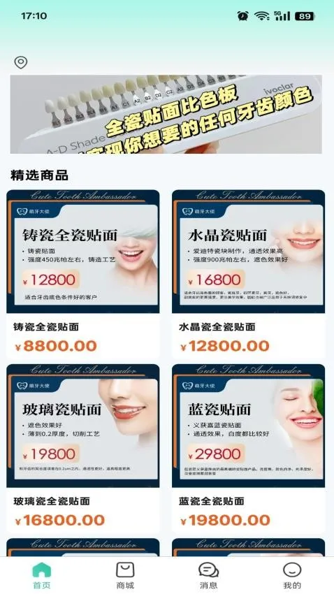 1. 丰富商品随心购:提供丰富多样的商品资源,涵盖各种口腔耗材、隐形矫正、全瓷贴面等,满足用户不同需求,让用户能随心选购所需商品。