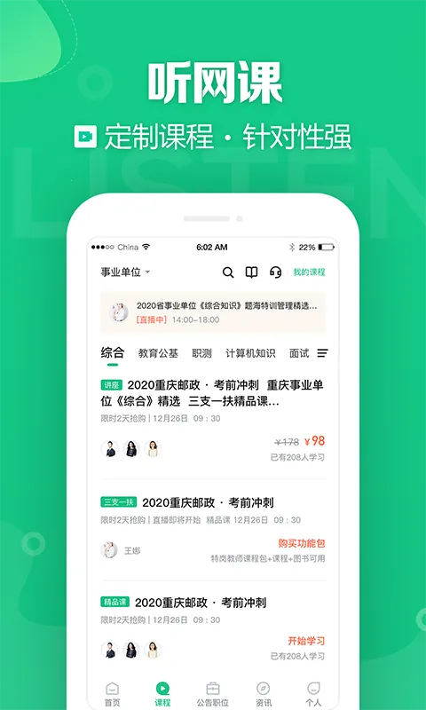 直播课堂:专业名师在线讲解,与老师同学在线互动学习打卡、互相监督。立足本地考情,带来上岸直播课,讲的都是纯干货,让考生短期快速提分。