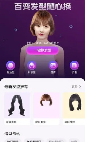 想轻松换发型、变发色?美发相机就能满足你!它能利用智能系统分析脸型,提供多种发型模板。不管是剪发、接发、染发,还是单纯想换个造型,它都能给你协助和指引。这里有丰富的发型库,涵盖男士、女士、儿童各种发型,还有海量发色可选,完全自由可定制。通过脸型测试,能让你知道自己最适合啥发型。软件还提供大量美发资讯,包含各类流行款式,让你紧跟时尚潮流。独特的人脸辨识功能,根据人脸特征推荐合适发型。你能在相机上体验各种不同款式与发色的发型,随意切换风格。还能在社交平台分享喜欢的发型图片,增加互动。有了它,再也不用为换发型纠结啦,赶紧下载开启你的美发之旅吧!
