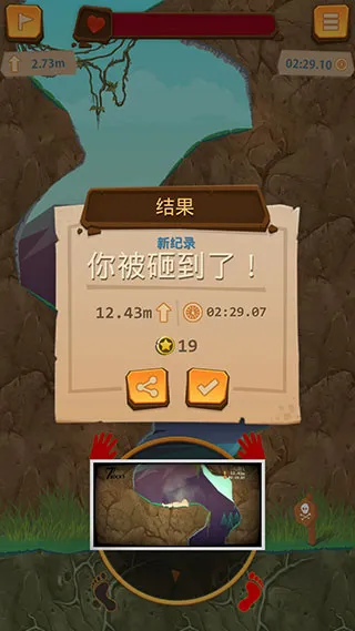 4、如果玩家成功登顶或者被砸到无法行动,就会导致游戏结束。