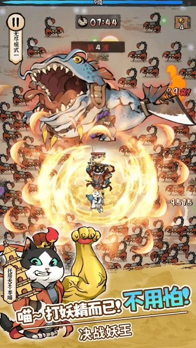 1. 创新的割草玩法结合策略战斗,兼具休闲与挑战性。玩家既能享受割草的爽感,又需运用策略安排猫咪站位、释放技能,击败敌人。