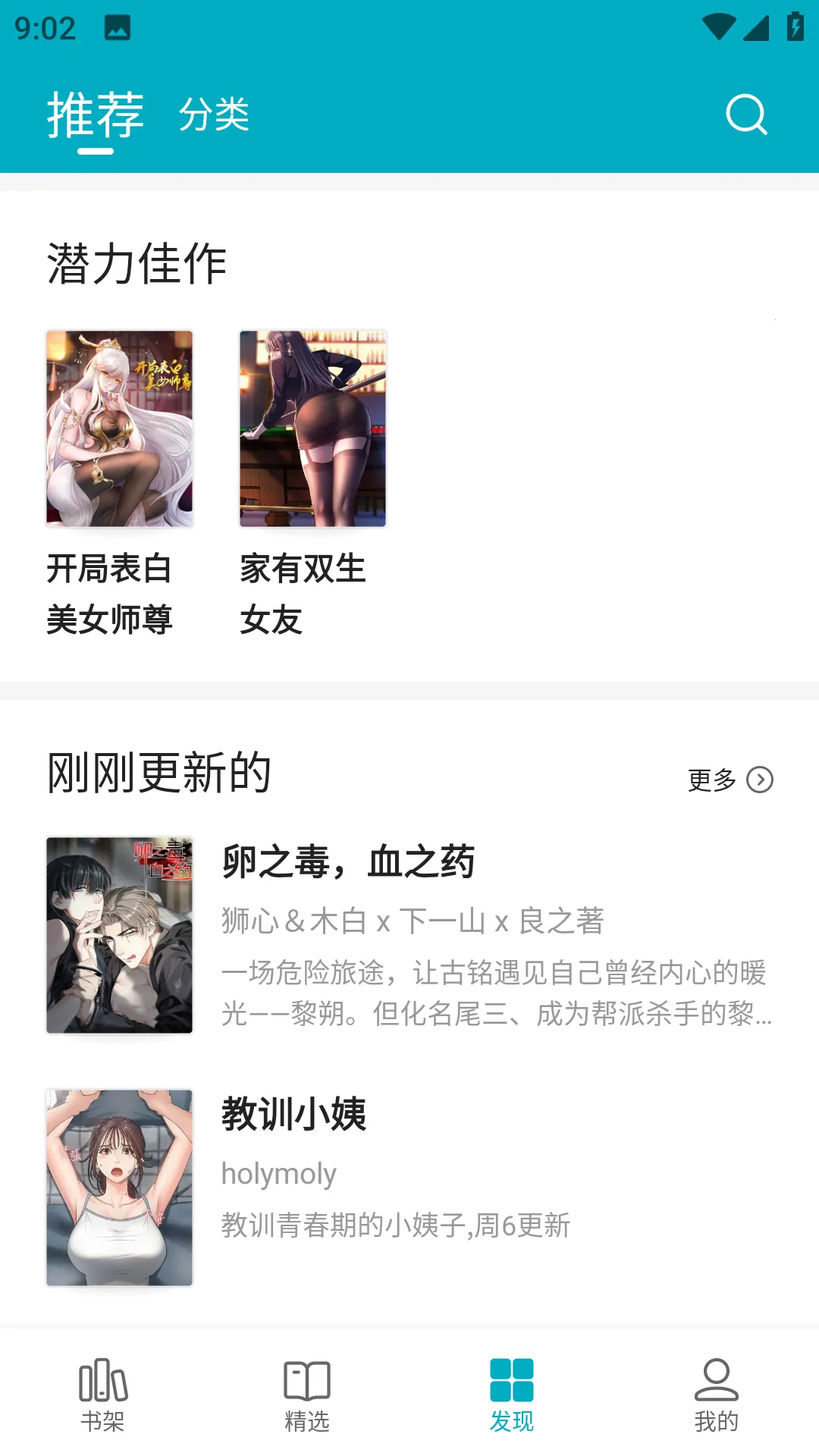 4. 遇到喜欢的漫画添加到书架,书架自动提醒最新更新内容,超方便。