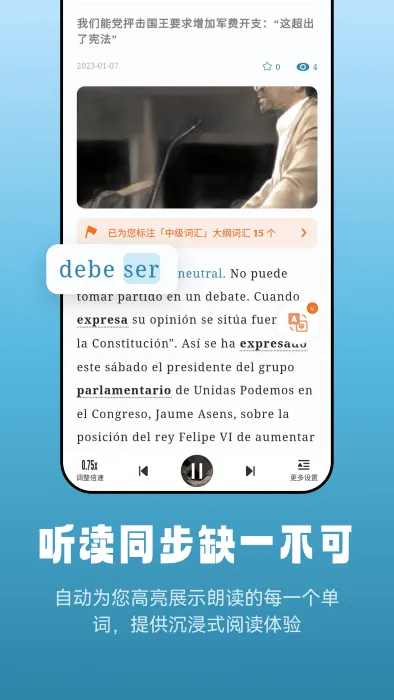莱特西班牙语阅读听力APP是优质西语学习软件,提供丰富阅读听力材料,有智能推荐。具分级训练、词汇学习等功能,内容每周更新,支持多语言互译,还有社区互动,覆盖全场景,性价比高。