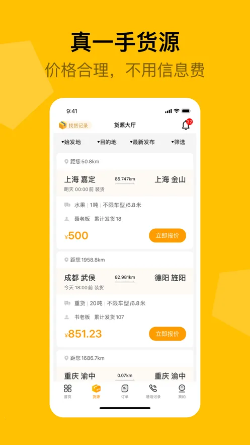 运费全额秒到账且平台0抽佣,双向信用评价体系担保交易,支持实名认证与放空赔付,资金安全有保障。