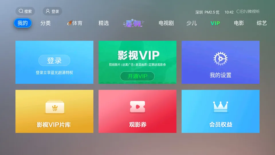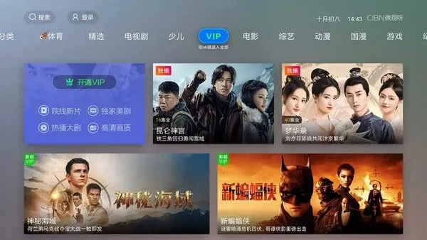 CIBN微视听资源丰富,覆盖电视剧、电影、综艺、动漫等多类型。频道导航清晰,一键切换精选、电视剧、少儿等栏目。搜索找片便捷,支持关键词搜索。登录后可享受个性化服务,同步观看记录与收藏。VIP专区能浏览高品质内容。其界面设计友好,海报大图展示,遥控器操作顺手。内容分层明确,精选、分类频道、VIP专区各有作用,减少翻找。无论是家庭追剧、周末刷综艺还是亲子陪看,都能带来省心、好看的大屏观影体验。