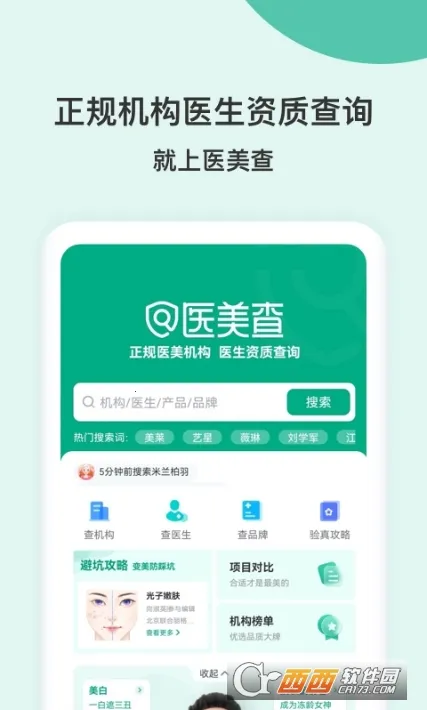 医美查2026官方最新版本是中整协互联网分会与新氧联合出品的权威医美整形查询软件。提供医疗机构资质、医生舆情口碑、仪器药品验真等查询服务,还有医美指南、避坑攻略等,助用户安心变美。