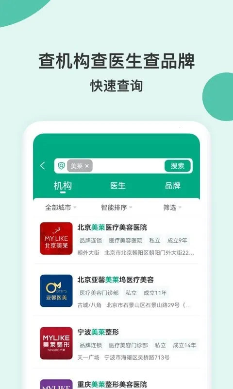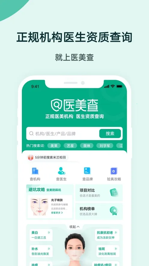 1. 资质信息全:提供全网数万家医疗机构的医美整形资质信息查询,涵盖医疗机构与医生的舆情、口碑、医美仪器药品材料验真、医美项目报价等,让你全面了解医美机构与人员情况。