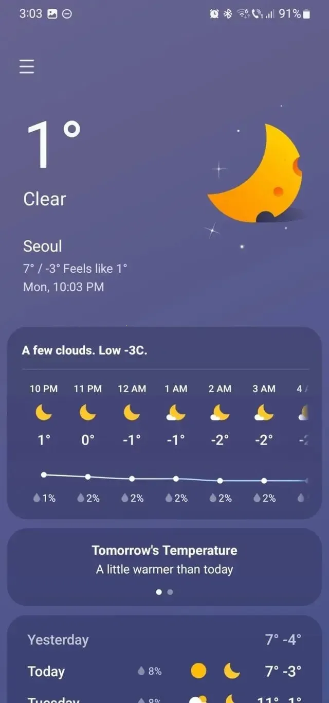 三星天气 2026 最新版本是一款实用的天气预报软件,能提供未来 40 天天气数据,涵盖降雨量、气温等。可自动定位切换,还有多维度指标。界面简洁,有多种主题和插件,助用户合理出行,全面了解天气。
