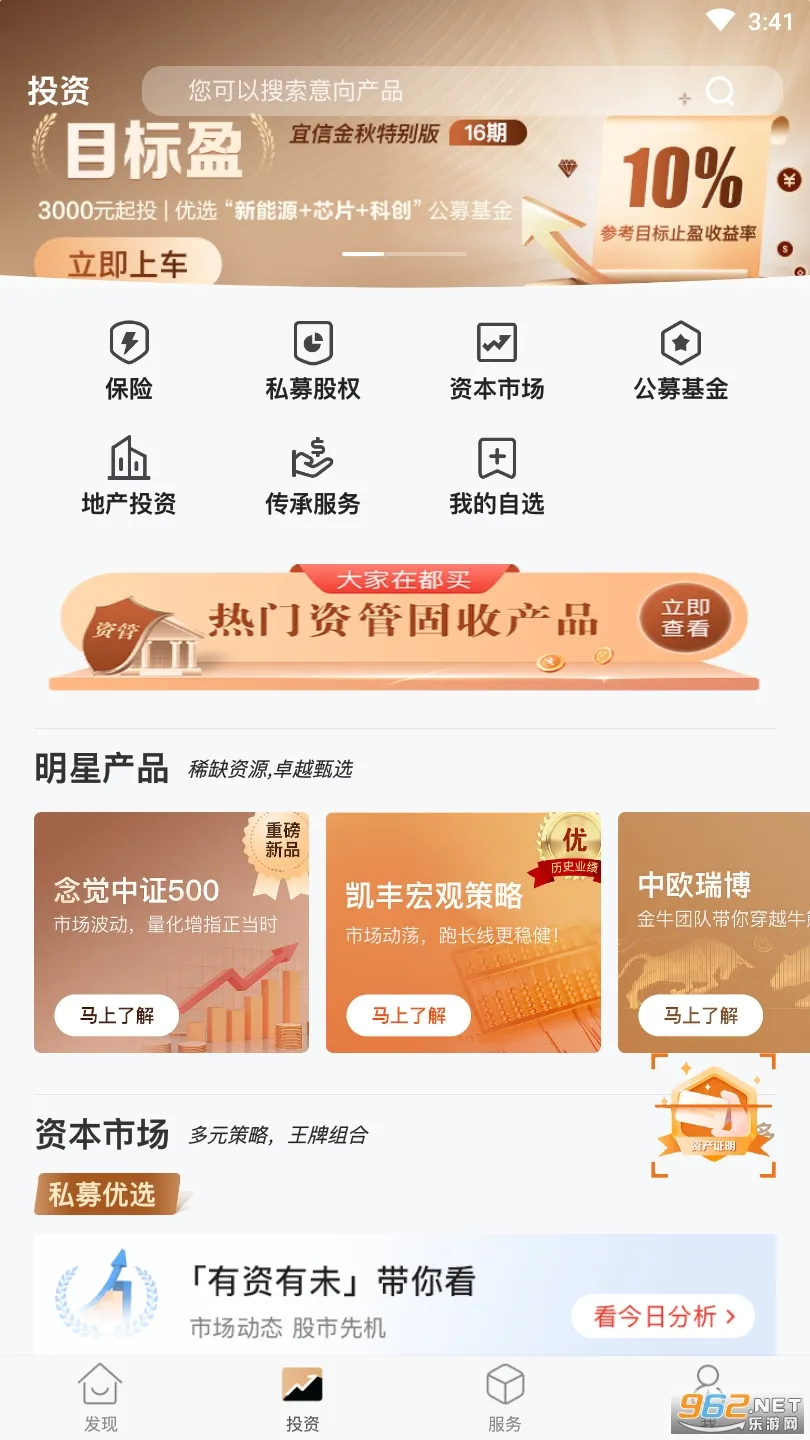 宜信财富是一款可靠的手机理财软件。它能为投资者提供免费自主开户、在线认购、资产查询、个人风险评测等功能。其优势显著,依托全球化专业团队,覆盖全面海外产品线,有独特的类别策略获取配置收益。软件亮点众多,提供专业理财顾问,给出专业建议引导理性投资,预约投资更便捷;还有多元化会员服务。能让资产信息一目了然,投资查询、交易更新,线上线下同步,随时随地掌握资产走势,随时查询投资收益,关注资产动态。更新内容不断优化已知问题,提升用户体验。如果你在理财方面有需求,不妨试试宜信财富,它能全方位满足你,助力你更好地管理资产,实现理财目标。