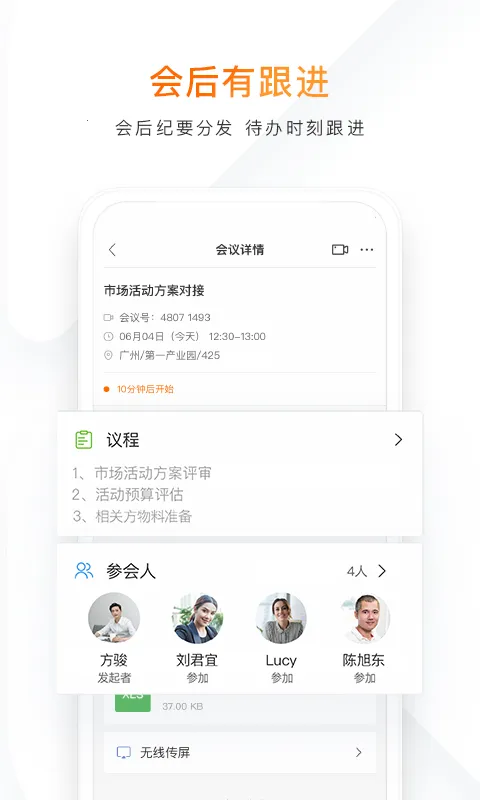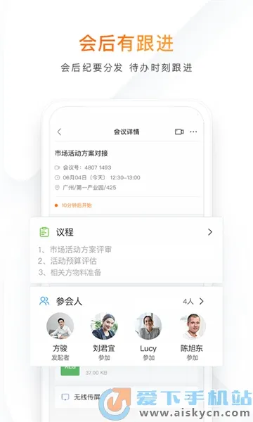 迈聆会议功能强大,多端开启支持小程序、PC、手机、会议平板等一键入会。协同办公有超强会控管理,屏幕共享和互动白板提升效率。数据统计方面,会议结束后可进行纪要分发和任务代办跟踪,提供多维度数据报告。高清视频会议提供高稳定性、画面清晰、语音稳定的体验。自研音视频算法保证音视频质量,全流程应用设计覆盖各环节,软硬高质量兼容多种设备,互动白板与屏幕共享提供协作空间,让会议更高效便捷。