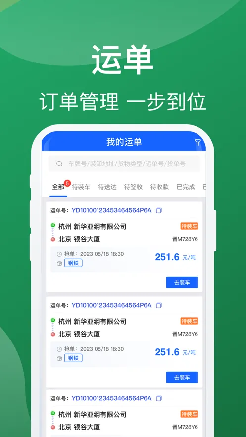 2. 货运订单种类丰富,订单信息详细,可依个人需求接单,无需担忧单量,系统还会自动配单。