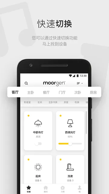 摩根全屋智能2026最新版本是一款智能家居服务平台,融合多种通讯技术,让设备互联互通。可绑定家中设备轻松控制,设置模式一键调整家居,展示设备状态,提供专属操控工具,还有收藏、快速切换等功能。