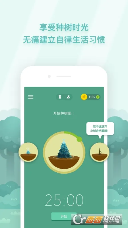 独特专注机制:基于番茄钟设计,种下的种子在专注时段成长为大树,离开则枯萎,用使命感和成就感帮你远离手机,提升时间管理能力。