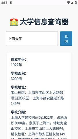 大学信息一键查成绩类软件超实用!它能帮你轻松搞定各类大学信息查询。不管是想了解学校成立时间、地址、介绍,还是招生资讯、历年录取分数线、师资力量、专业就业前景等,都能快速获取。像大学信息一键查 app 就很棒,覆盖 2800 余所高校和 1300 多个专业信息,支持按分数查院校、按选科查专业。还能还原填报流程,预测录取风险,通过性格兴趣测评推荐适配专业,有专家在线答疑。设有校友圈和校友录板块,让你了解真实校园日常,查看名人明星校友背景。能根据你的成绩、地域偏好等生成详细报告,提示专业调剂等风险,整合了招生计划、专业排名等众多信息,部分还支持高校多维度对比,结合分数给出报考建议。对学生尤其是高考或高三学生来说,用它查询感兴趣或要填报的大学情况,实在太方便啦!