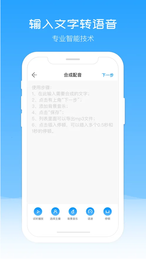 配音盒子是一款超实用的文字转语音软件。操作特别简单,进入首页点击配音合成,输入文字,还能添加背景音乐,自定义语速音效等信息,就能轻松合成配音。它能解决很多问题,比如制作广告、企业宣传语、视频配音、有声阅读等。有超多亮点,能试听播放配音,不满意可修改再保存;多种角色配音可选,男女声都有,还能自定义语速;能设置停顿让配音更自然流畅;操作简单,输入文字选发音人就能转换;广告配音可导出本地,连蓝牙音箱播放实现广告叫卖效果。用途广泛,不管是广告促销、有声阅读,还是制作各种语音内容,它都能满足。随时随地在线使用,轻松帮你完成从文字到语音的转换,超方便!