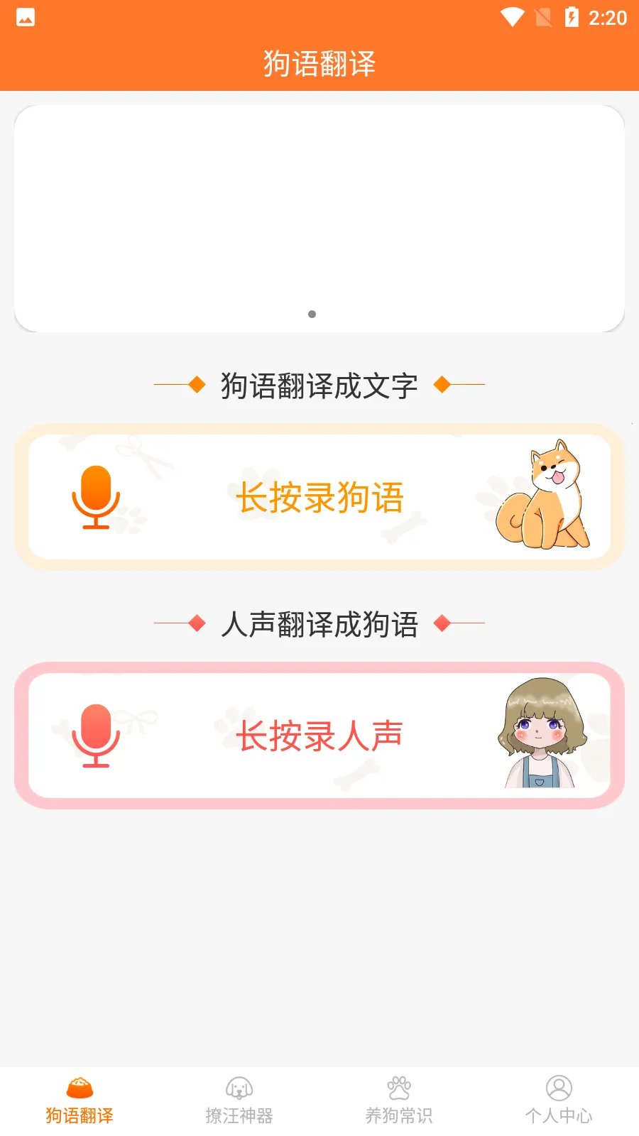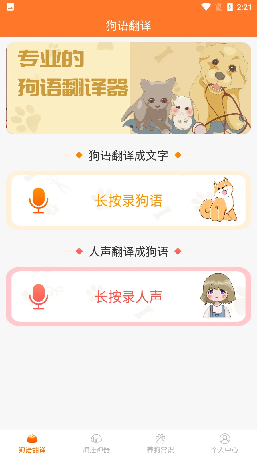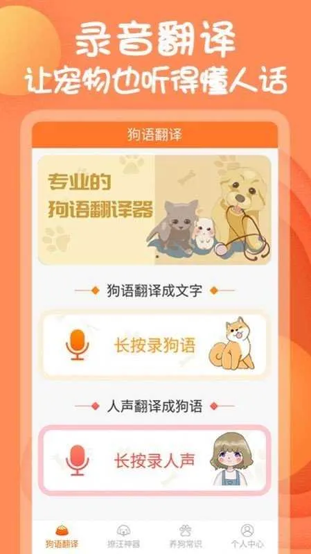 这是一款专注宠物声音解码的生活类工具应用,主打狗狗语言的智能解析。通过AI音频分析技术,将日常吠叫等声音转化为文字反馈,同时提供模拟狗语发声功能,强化情感联结。它还整合了基础养犬知识库等,助力新手铲屎官稳步进阶。