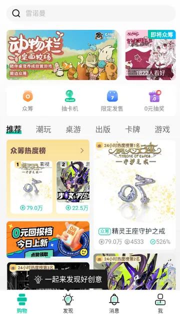 摩点是专注文创领域的众筹预购平台,超适合文创爱好者!在这里,你能支持喜欢的游戏、动漫、影视、文学等项目,帮创作者筹资金,让好创意成真。像你喜欢的手办、桌游、独家文创周边,都能第一时间买到。