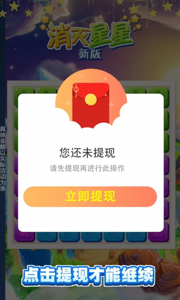 消灭星星红包版是一款经典休闲消除手游,画面精美,玩法简单易上手。点击相邻同色星星即可消除得分,有多种游戏模式。通过完成关卡、每日任务等可获奖励,还有丰富道具助你通关,快来体验消除乐趣并赚钱吧!