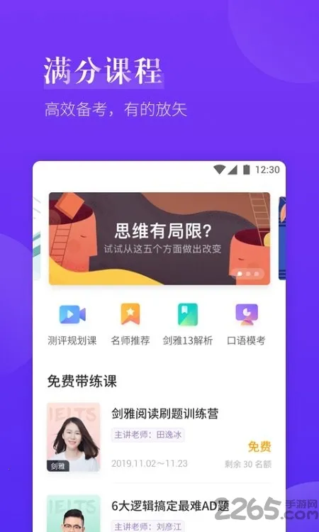 1. 全面覆盖雅思各方面学习内容,包括口语、听力、阅读、写作、单词,提供剑桥雅思真题练习、口语话题练习、写作经典句子练习及免费干货课程讲解。