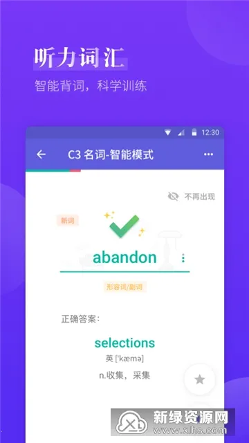 记单词时,可设置每日记忆量并打卡,还会根据你的词汇量和复习结果动态调整单词顺序与难易度,遇到生词先给权威例句再释义,促进记忆理解。听听力能逐字精听,听不懂可重来,听力材料还能变速播放、循环重复。做真题有历年雅思考试真题,随时可练,做完即时反馈。资源库收集海量作文写作素材和句子模板,真题解析提供精细内容详解,错题库自动记录错题并给出解析。