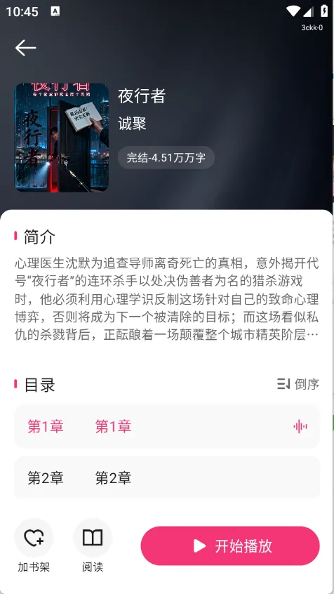 该软件书籍多元,涵盖爱情、悬疑等各类,且定期更新,精细分类方便查找。具备科学的书架管理功能,能快速定位书籍。书籍更新及时推送,排行榜实时更新。听书无广告,营造良好氛围。还能收听电视台节目,播放速度可任意调整,支持边听边读。有丰富社区可加入,能收藏、分享书籍,查询历史听书记录,依习惯推荐。能满足听书需求,解决听书荒,正版书籍可与爱好者交流分享,后台可播放,添加书架便捷。