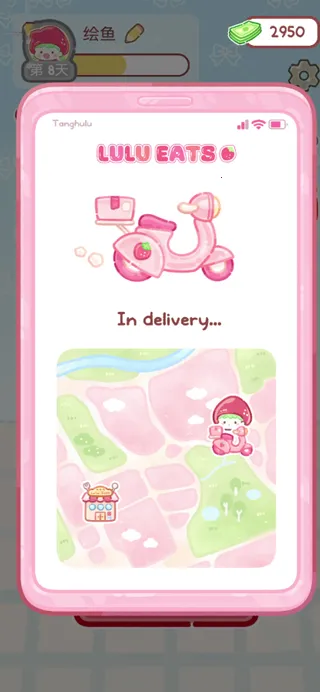 2. 新颖外卖玩法:进入游戏选左上角粉红电瓶车按钮可进入外卖系统,在点餐界面选食品加入购物车点击Order,订单下达后配送,送达点击包裹打开,还能接着开启直播直接吃。