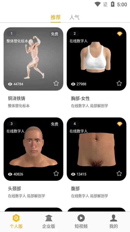 4. 包含男女三维数字人体及众多局部数字解剖模型,覆盖九大系统,内容丰富全面。