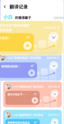 猫语翻译空间是成都一聪科技研发的宠物语言翻译软件。能录猫叫并快速翻译,助你理解其情绪想法。还有丰富音频库,具备多种功能及亮点特色。不断更新优化,提升性能与体验,是铲屎官与猫咪交流的好帮手 。