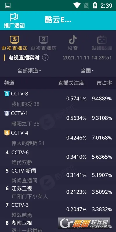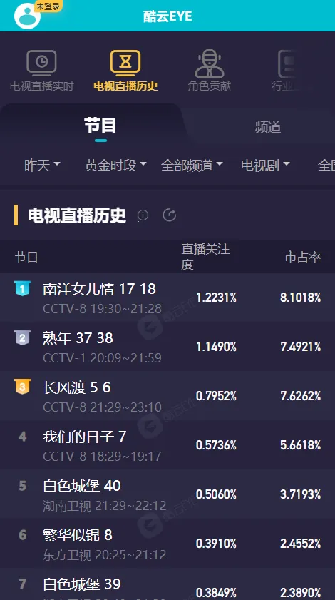 酷云eye2026最新版本是一款集实时收视率查询、影视资源播放数据分析与榜单等功能于一体的综合性应用。为广电行业和影视爱好者提供数据支持、观影体验与市场洞察,数据详实,更新快,操作便捷。