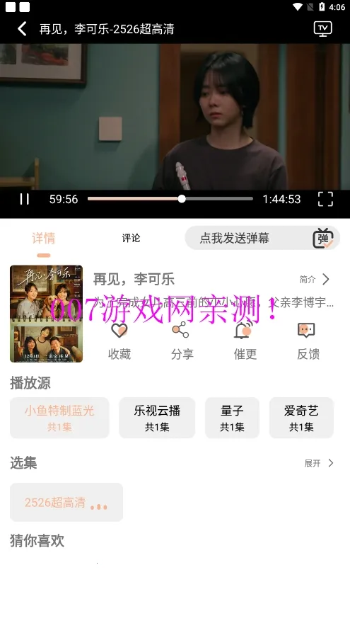小鱼影视资源海量,覆盖电影、电视剧、综艺、动漫等。界面简洁操作便捷,无广告干扰。支持高清画质,部分影片有4K超清选项。智能推荐系统精准推送。具备离线下载功能,多设备可同步。还能通过搜索栏快速找片,可将喜欢的影片加入收藏夹。能根据用户观看记录和偏好,精准推送符合兴趣的作品,帮助用户发现更多优质内容。支持多种视频格式及清晰度切换,适应不同网络环境,确保播放流畅稳定,带来舒适不间断的观影体验。