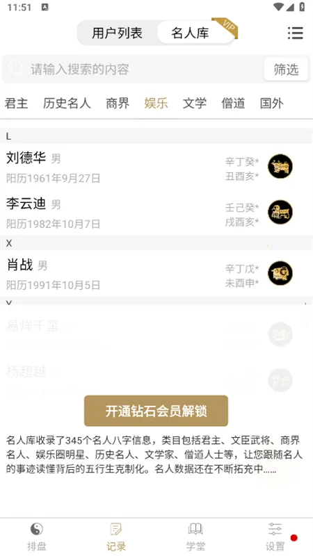 名人命盘数据库:揭秘名人命运,探究八字玄机,用户可通过对比分析,更好地理解八字与人生轨迹的关系。