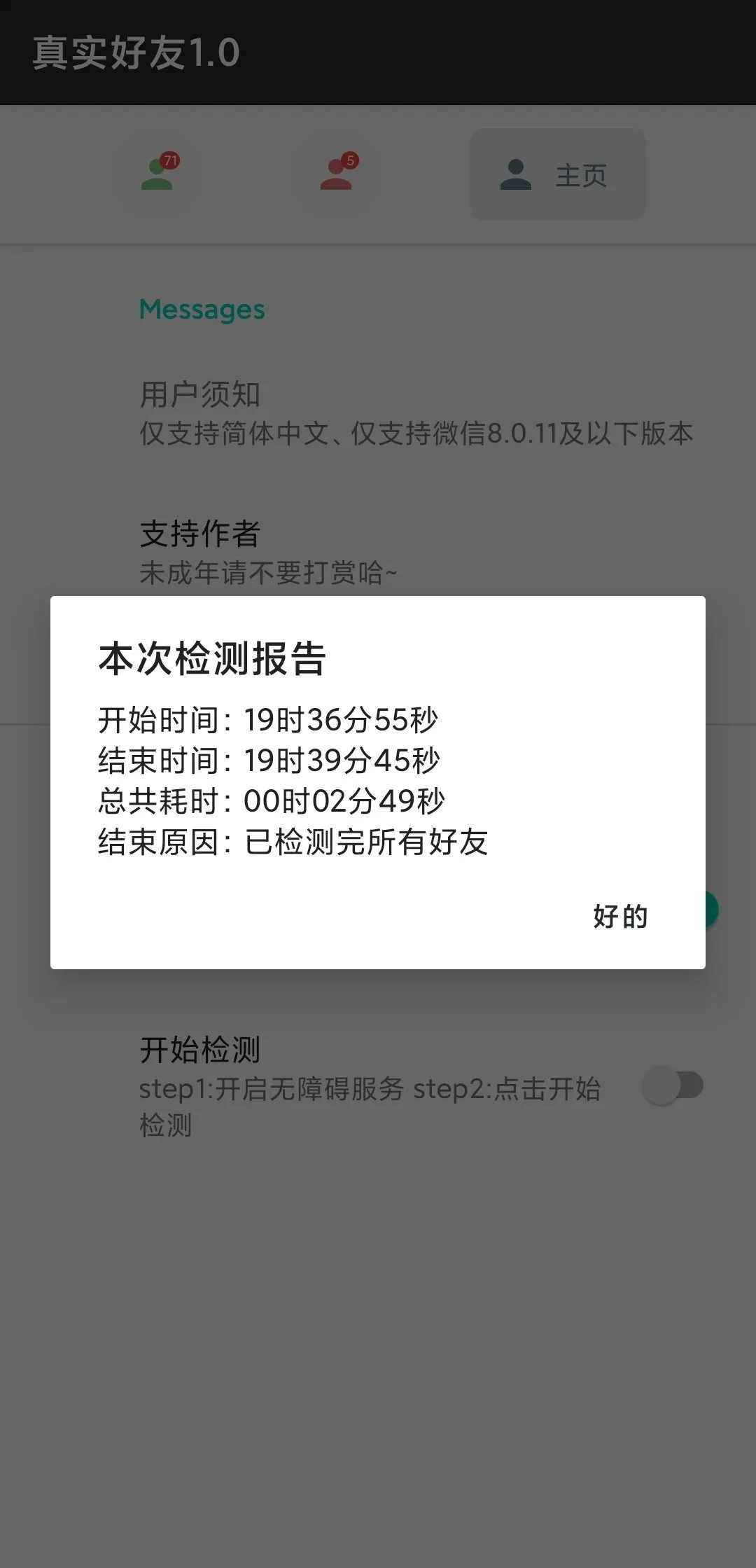 操作便捷:无需root权限,仅开启无障碍服务便可轻松使用,一键检测好友是否将自己删除,快速生成列表,方便管理联系人。