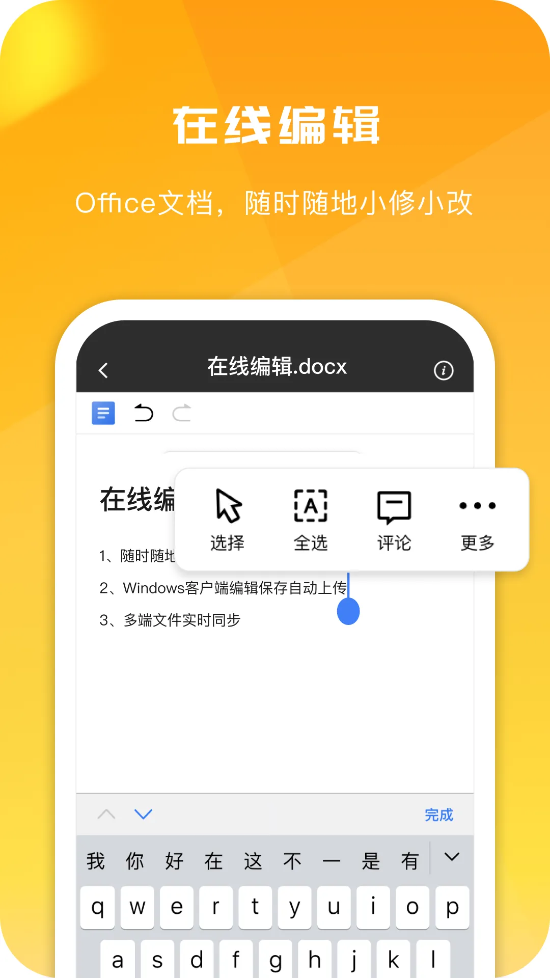 多端同步:文件安全存储且实时同步,支持手机、电脑、平板等多端使用,方便随时随地访问。