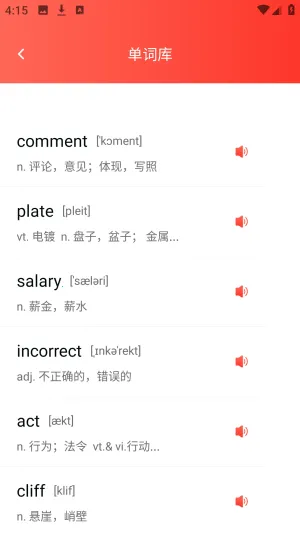 2. 单词学习模块覆盖核心词汇,能通过分类记忆和例句练习掌握常见生活与学术词汇,有效提高词汇量。