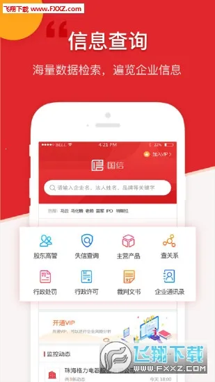 国信APP是一款专业的企业信息查询软件,由中投国信北京科技发展有限公司自主开发并运营。它以企业信息查询为核心功能,为企业和个人用户提供应用服务。