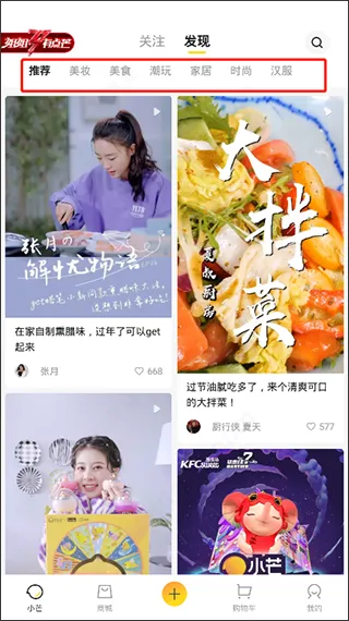 1、下载安装好软件即可运行app,进入即可看到其中提供了美妆、美食、潮玩、时尚、汉服等海量内容;