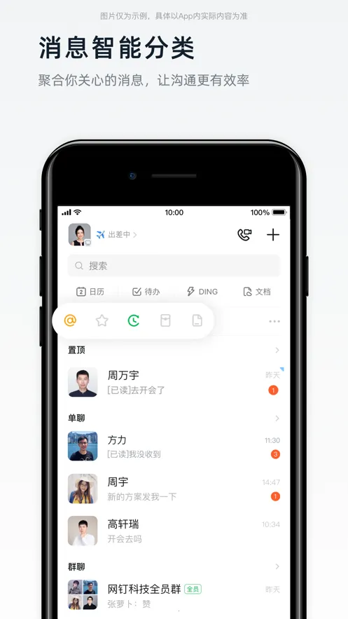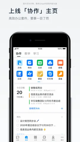 3. 功能实用:集签到、请假、出差报销、报告、邮箱、投票等多种应用于一身,满足多样办公需求。