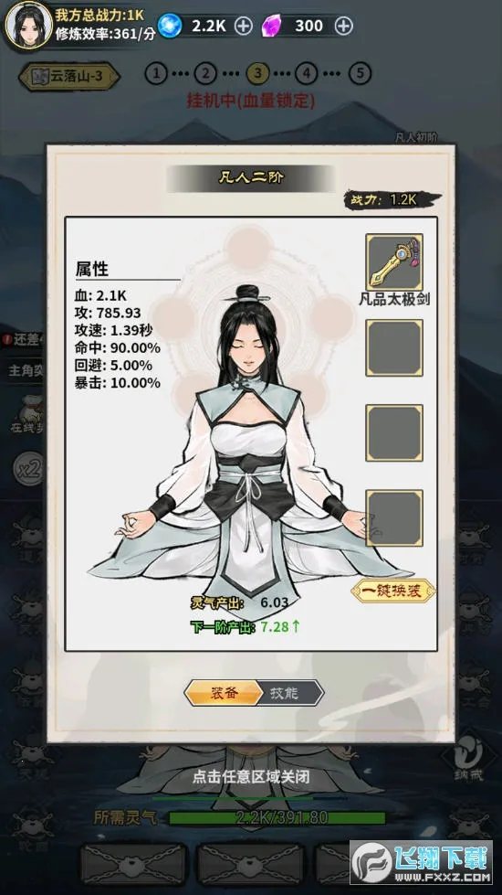 3. 游戏画面采用水墨风,古典韵味十足,操作简单,放置挂机即可体验修仙之旅。
