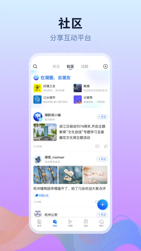 潮新闻的亮点在于其短视频特色,通过视觉化报道提升信息传播效果与用户体验。它还建立了潮客拍友社区生态,鼓励用户创作分享生活瞬间。同时,软件依托浙江日报报业集团的媒体资源,确保新闻内容的专业性与深度广度。