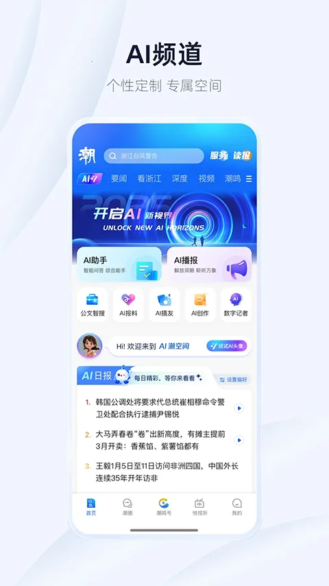 潮新闻是浙江日报报业集团打造的短视频新闻客户端。它能解决你想随时了解国内外新闻资讯的需求。这里有海量新闻,涵盖时事政治、社会生活等多领域,通过短视频和图文呈现。八大频道分类清晰,像天评聚合网友观点,天闻荟聚全球热点。直播中心可让你看记者现场直击报道。你还能在社区分享身边事,参与话题讨论。它立足浙江,联动长三角辐射全国,以短视频为特色,专注事件报道与热点引导。依托集团资源,新闻专业有深度。采用轻快设计理念,操作流畅。集成新闻与生活服务,有天气预报等。支持个性化推荐,根据兴趣推送内容。无论是想紧跟热点,还是了解生活资讯,潮新闻都能满足你,让你随时随地掌握天下事。